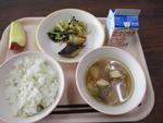 16日 ご飯 すずきのマヨみそ焼き ひたし青豆 せんべい汁 りんご