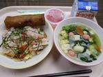 3日 さくらちらし寿司 鮭とチーズの春巻き かきたま汁 さくらゼリー