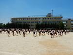 全体の応援合戦で始まりました。校庭いっぱいに子ども達の元気な声が響き渡りました。