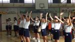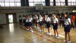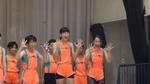 全校朝会の前に体育大会の壮行会が行われました。陸上部の児童は、種目ごとの紹介に合わせて決めポーズをしていました。最後に応援団がエールを送りました。大会は10月8日です。最後まで怪我をせず頑張りましょう。