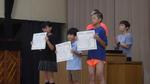 全校朝会では理科作品展と夏の席書大会の表彰を行いました。いつも感じることですが、八二小の児童は、友達の頑張りを自分のことのように心から喜び、おめでとうと言うことができる子ども達です。