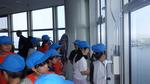 千葉市ポートタワーに到着。ガイドさんからお話を聞きいたり、自分たちでポートタワーから見える建物や景色から場所を見つけていました。