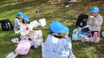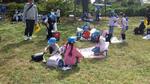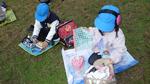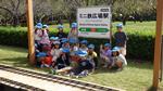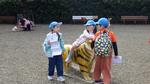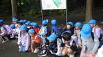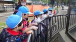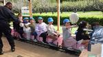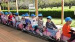 昼食場所に荷物を置き、ミニ鉄道体験です。みんな「足を乗り物の外に出さない」という約束を守っていました。係の方も誉めていました。