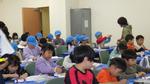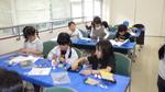 たくさん食べた後は、自分たちで片づけを済ませ「市川少年自然の家」に出発です。「市川少年自然の家」ではペンダントを作りです。デザインは学校で考えたものを見ながら描きました。みんな真剣です。出来上がったペンダントは今日、お家に持って帰ります。ぜひ、観てください。