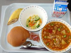煮込みには、ひよこ豆、枝豆、大豆、インゲン豆が入っていました。1,2年生は、水泳で冷えた体に温かい煮込みはおいしく感じたことだと思います。