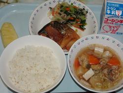 ご飯 鯖の味噌煮 けんちん汁 のり和え パインアップル 牛乳