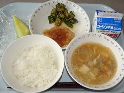 ご飯 鶏肉のみぞれかけ 胡麻キュウリ 味噌汁 メロン 牛乳
