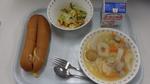 今日はミルメークが出ました。牛乳の苦手な子が「飲んでみようかな」と積極的に牛乳を飲んでいたそうです。甘いコーヒー牛乳の味がパンメニューによく合っていたと思います。
