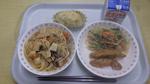 五目焼きそば 手作りカレー肉まん わかめスープ 牛乳