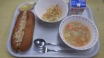 チリビーンズドック ごぼうとれんこんのサラダ ポテトスープ りんご 牛乳