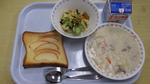 アップルトースト クリームシチュー 海草サラダ 牛乳
