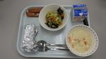 ハムチーズロールは耳を切り取ってくれていて、その耳を揚げて砂糖をまぶしてありデザートのように食べられました。ミルメークもあり今日は子供たちもうれしい給食でした。