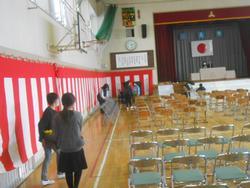 体育館や教室も、あっという間に入学式仕様に大変身。