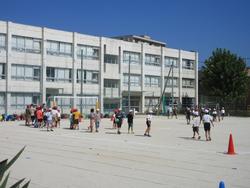 今日は2・4・6年生がソフトボール投げを行っていました。