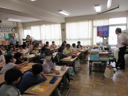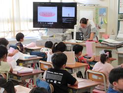 6年生は外国語の学習。 LATのジャニス先生の授業を受けています。この後、友達との意見交流の時間でした。 |