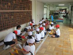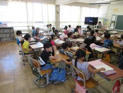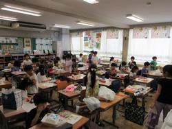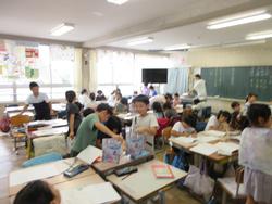 2年生が行うときは4年生がお手伝いをしています。 4年生がお兄さんお姉さんになって、丁寧に説明しています。 |