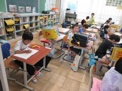 2年生は、算数の学習。1学期よりも、座る姿勢が立派になってきました。 | |