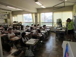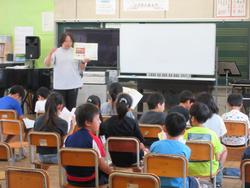 4年生は、社会で防災出前授業を行っています。 講師の先生から、自然災害の種類について説明を受けます。クイズ形式で、意欲的に取り組んでいます。 |