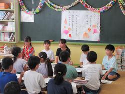 6年生は、円になって「夏の思い出」を一人ずつ発表しています。 『自分の思いを皆に伝える』『相手が伝えたいことを聞く』『クラスの友達のことを知る』、大切な学習です! |