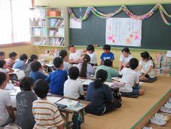 1年生の国語の授業で「大きなかぶ」の物語文を読んでいます。 登場人物になりきって、大きな声で読んでいました。 |