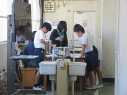 6年生は理科室で、実験に取り組んでいます。 自分たちで実際に取り組むことで、興味を持ちながら知識の習得を図ります。 |