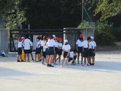 体育大会まで、残りわずかとなりました。 リレーの練習も本格的に始まりました。バトンの受け渡しの話を聞いています。 |