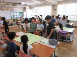 3年生は、総合学習の時間で作成した「安全マップ」を、1年生に紹介しに行きました。 他学年との交流は、大きな学びになります! |