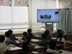 4年生は国語の「1つの花」の学習です。 戦争の題材なので、まずはその時代の生活について、映像を見ていました。 |