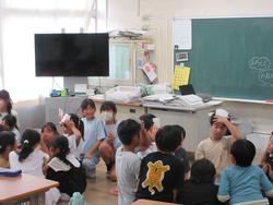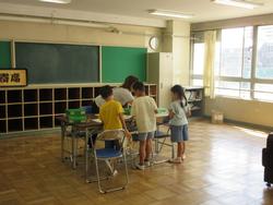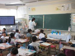 1年生は、「時間と時刻の」学習です。 時計を使って、黒板に書かれた時刻を、表しています。 「できたよ!」とうれしそうな声が響いていました。 |