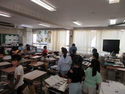 先生が教室に入ると、子ども達から、 「こんにちは。」 という元気のいい挨拶があり、清々しい気持ちになりました。 |