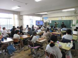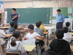 不審者役の警察の方が侵入した教室に、話をしに来てくださいました。 子ども達も、ほっと安心したようです。 子ども達にとっても教員にとっても、有意義な訓練となりました。 |