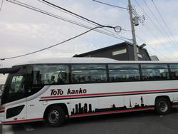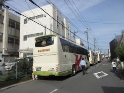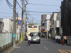 渋滞に巻き込まれることなく、無事学校に戻ってきました。 バスの中から、手を振っています。 |