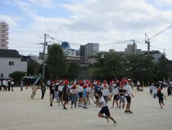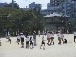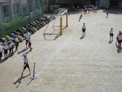 昼休みには、体育委員会企画の「チャレンジレース」を開催中。 自然と、他の学年との交流が生まれています。 |