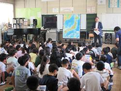 終わりに、警察の方から放送でお話をいただきました。 「先生方は、皆さんの命を守ってくれるから、指示をよく聞いて動きましょう。」と話をしてくださいました。 |