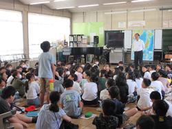 子ども達からの質問にも、一生懸命応えてくださいました。 貴重な資料や防災食にも触れることができ、とても有意義な時間でした。 |