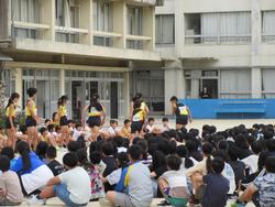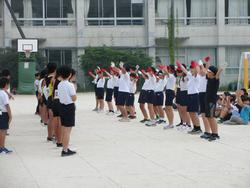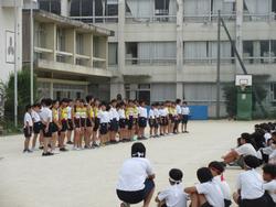 応援団中心に、全校児童・職員からエールが送られました。 全力を尽くして頑張ってもらいたいです! |