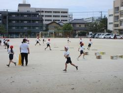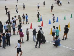 2年生は、障害物走に取り組んでます。 これから、リレー遊びへと発展していきます。 |