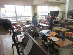 もう一つの教室では、鉄琴担当の人が集まり、先生から指導を受けています。 どの学年も、発表に向けて練習に励んでいます。 |