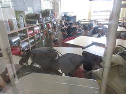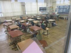 本日、松戸警察の方にお越しいただき、不審者対応避難訓練を行いました。 6年生の教室に不審者が侵入した想定で、他のクラスは入口にバリケードを築きます。 |