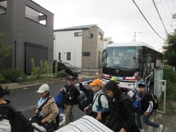 大きな荷物を持って、バスに乗り込みます。 どの子も笑顔いっぱいです。 |