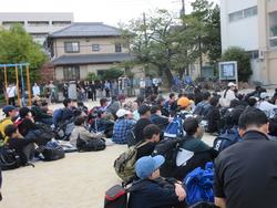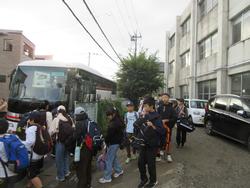 多くの先生方もお見送りに出てきています。 「頑張ってきます!」と、選手たちから元気な挨拶がありました。 |