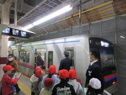 実際に発車する電車も見ることができました。 「車掌さんになりたい。」とうれしい感想も聞くことができました。 |