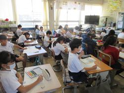 3年生は、昨日の校外学習の振り返りを、新聞にまとめています。 挿絵も入れながらまとめています。 |