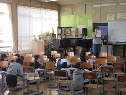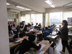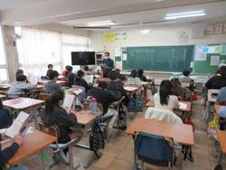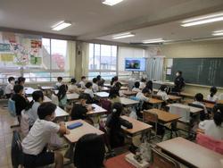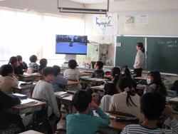 | 2年生の様子です。画面を見て、話をしっかりと聞いています。 | |