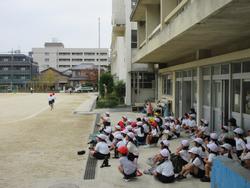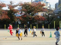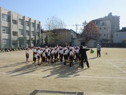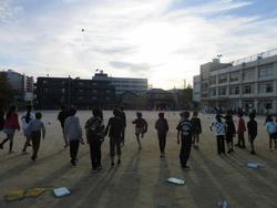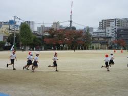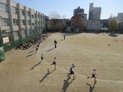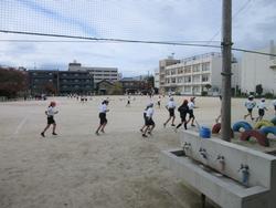今日の天気は曇り空。 ただ、子ども達は元気に校庭を走っています。 業間休みには、持久走練習もあります。 |