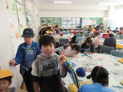 1年生は、大きな画用紙に動物の絵を描いています。 どんな作品が出来上がるか楽しみです。 |