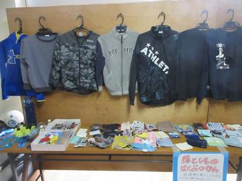 落とし物を、昇降口前に、展示しています。 明日の授業参観の時に、確認してみてください。 |