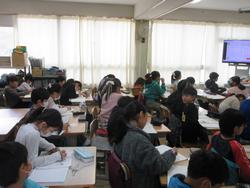 4年生の学習への取組。 皆で黒板に書かれた内容をノートをとっています。姿勢も素晴らしいですね。 |