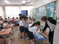 5年生は、外国語の授業に取り組んでいます。 LATのジャニス先生の発音を聞きながら、アクティビティに挑戦しています。 |