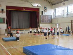3年生は、体育で高跳びに挑戦中。 3歩で上手に跳べるか、繰り返し取り組んでいます。コツは「助走の取り方」です! |
